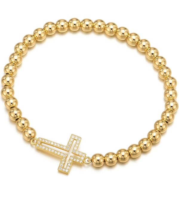 Bead Bracelet with Cross Charm – gold